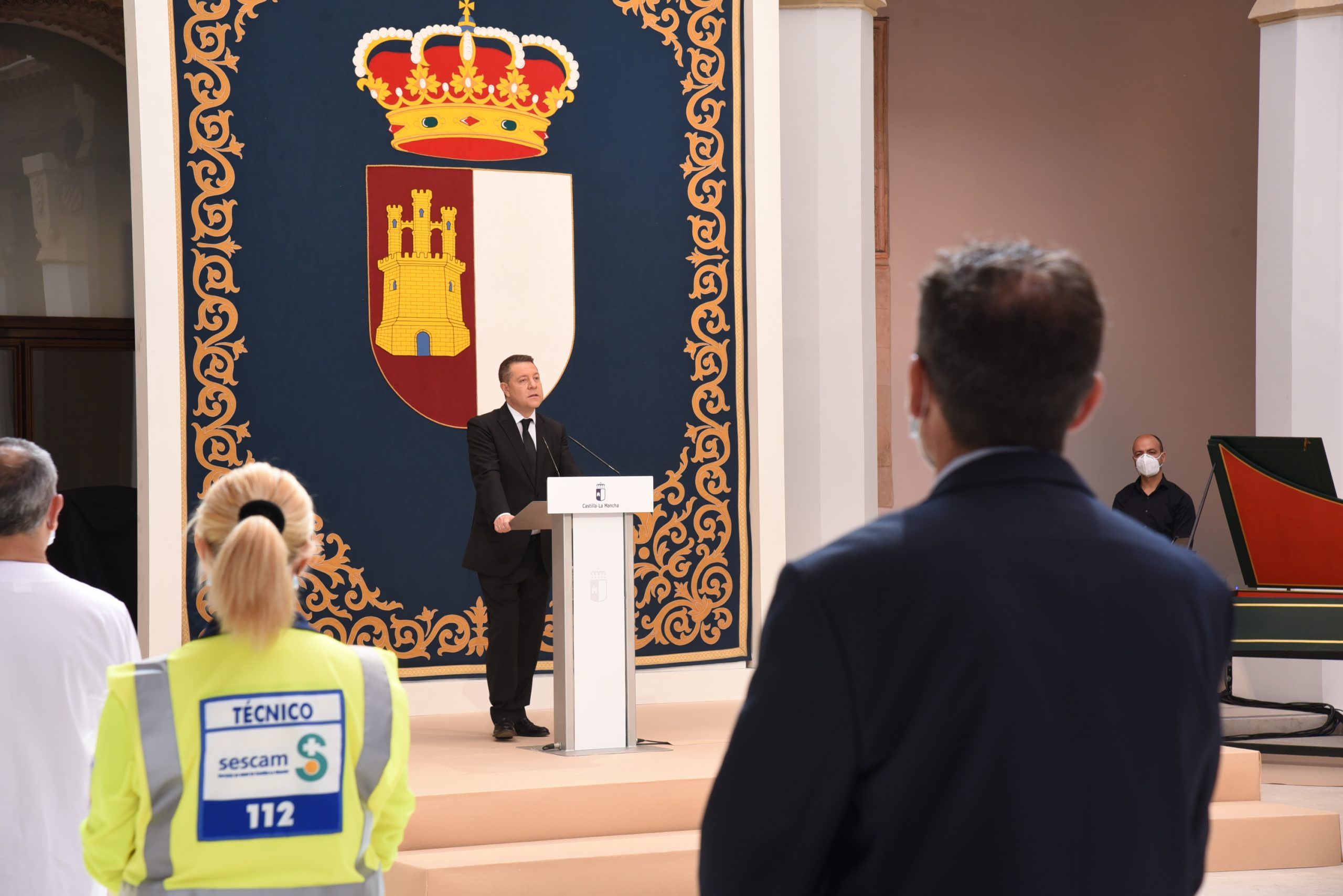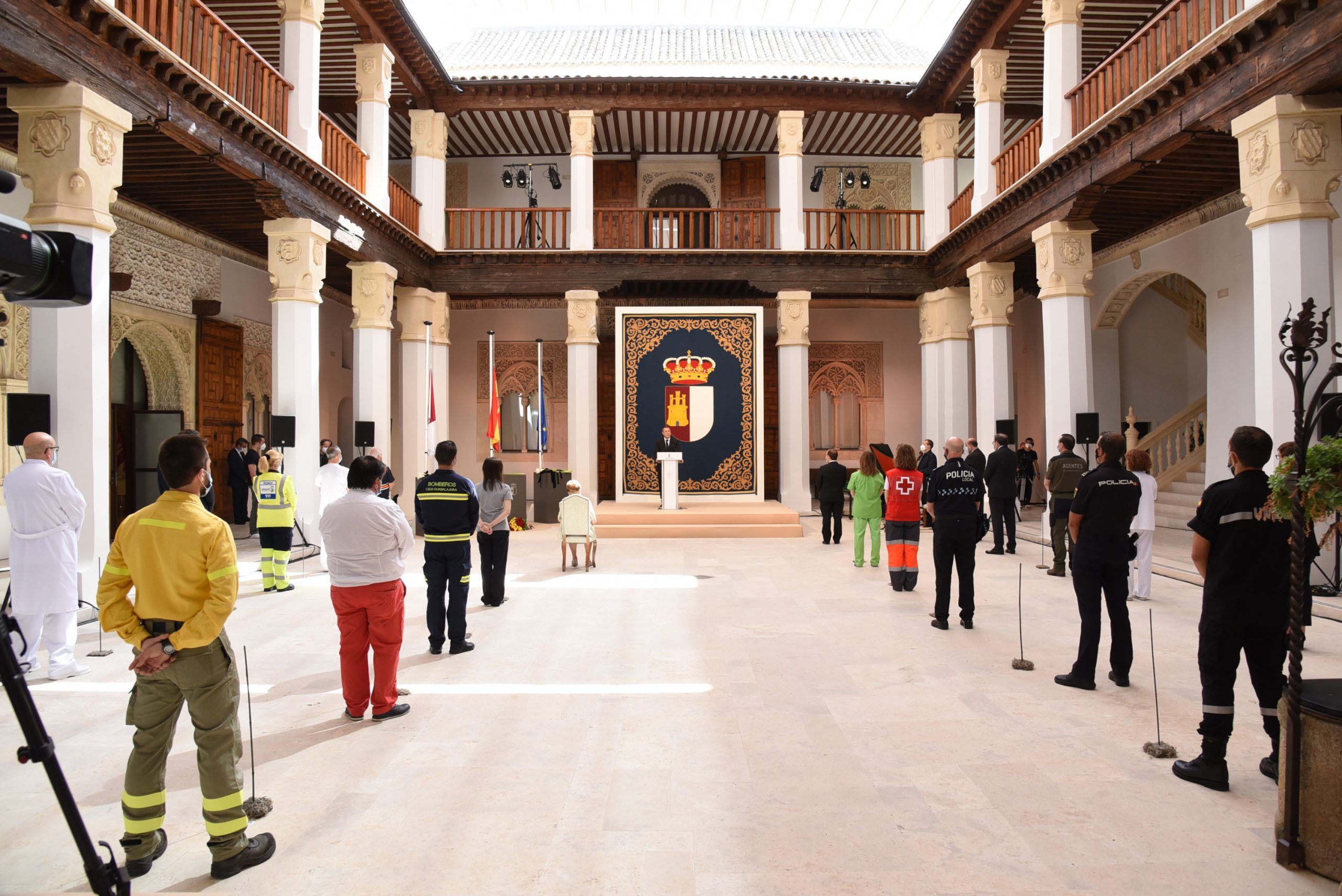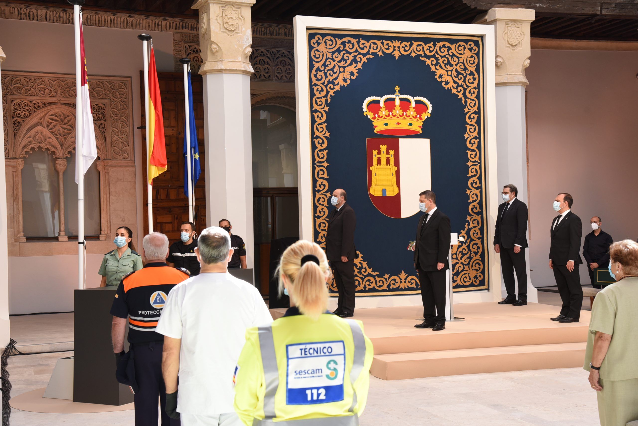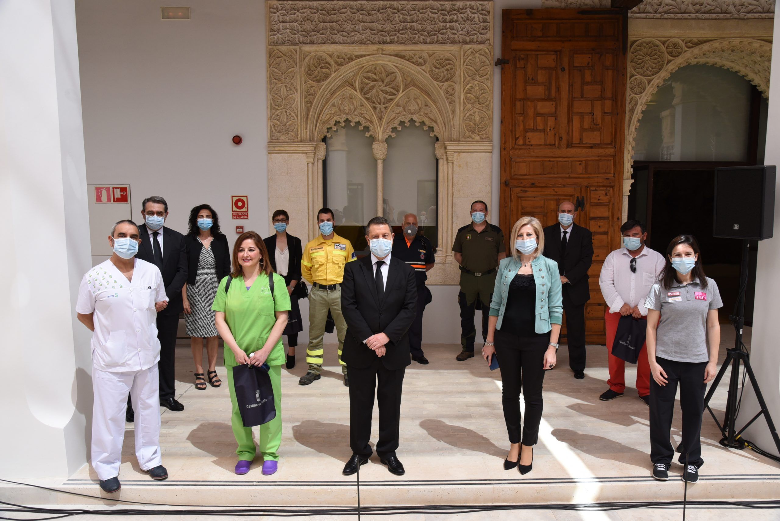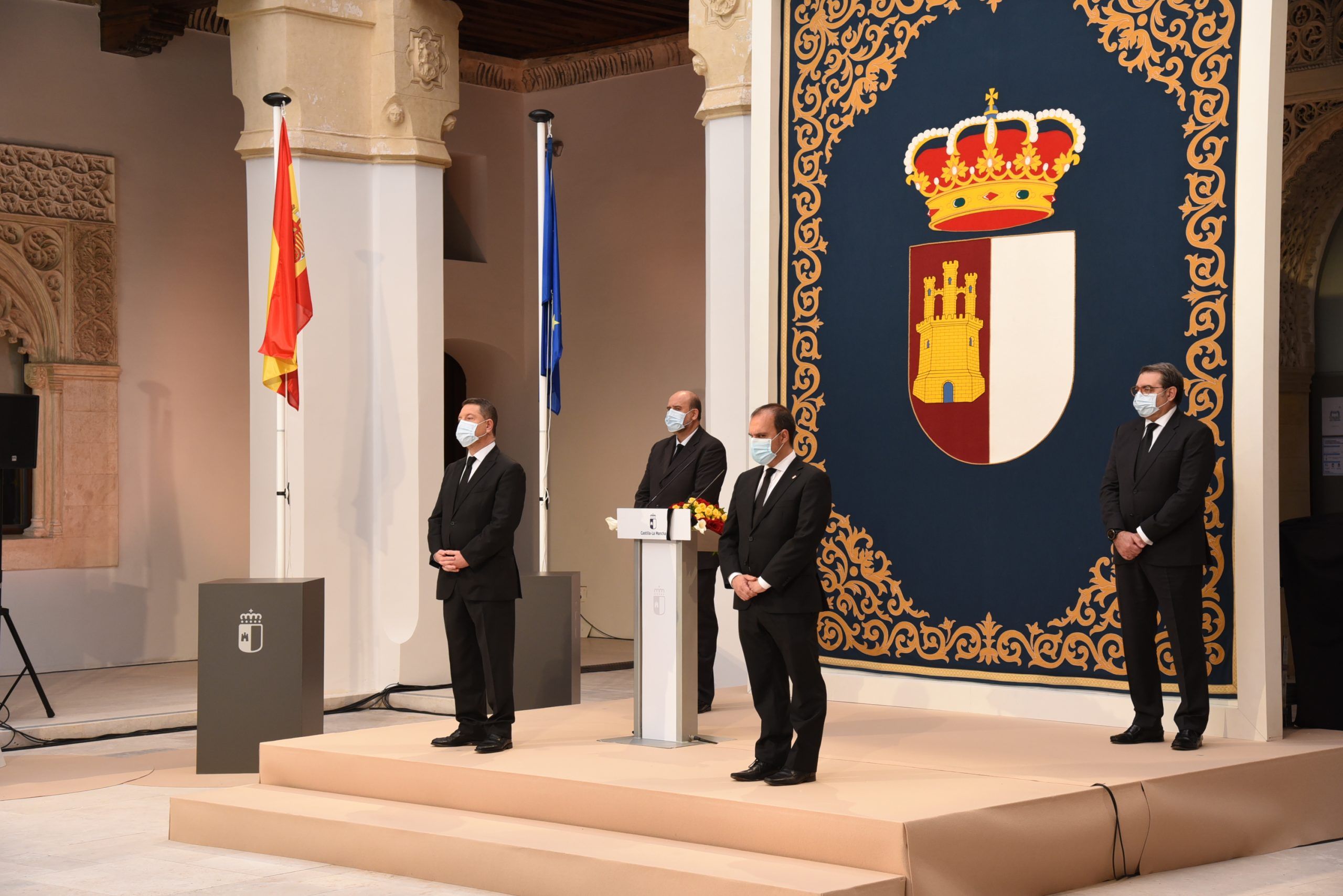 Lejos de hacer de la jornada de hoy una fiesta, Emiliano García-Page sí que ha querido exhibir el orgullo que siente y respira Castilla-La Mancha por los hombres y mujeres que, día a día, han trabajado por mantener el pulso de esta tierra que ha sufrido en primera línea la onda expansiva del virus. Del mismo modo, ha querido centrar la jornada en expresar y compartir el dolor de las cerca de 3.000 familias que lloran la pérdida de sus seres queridos, a los que ni si quiera pudieron despedir.