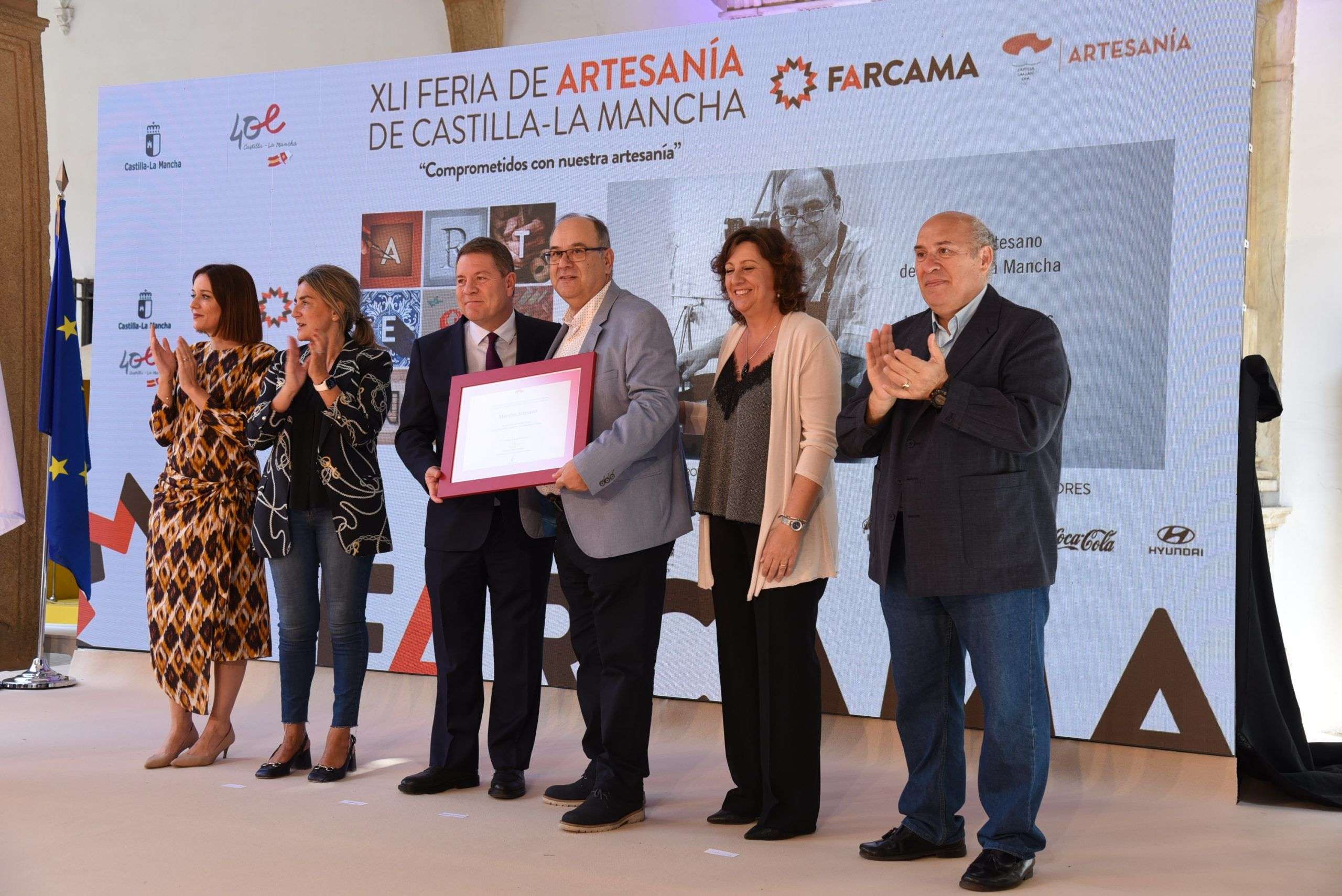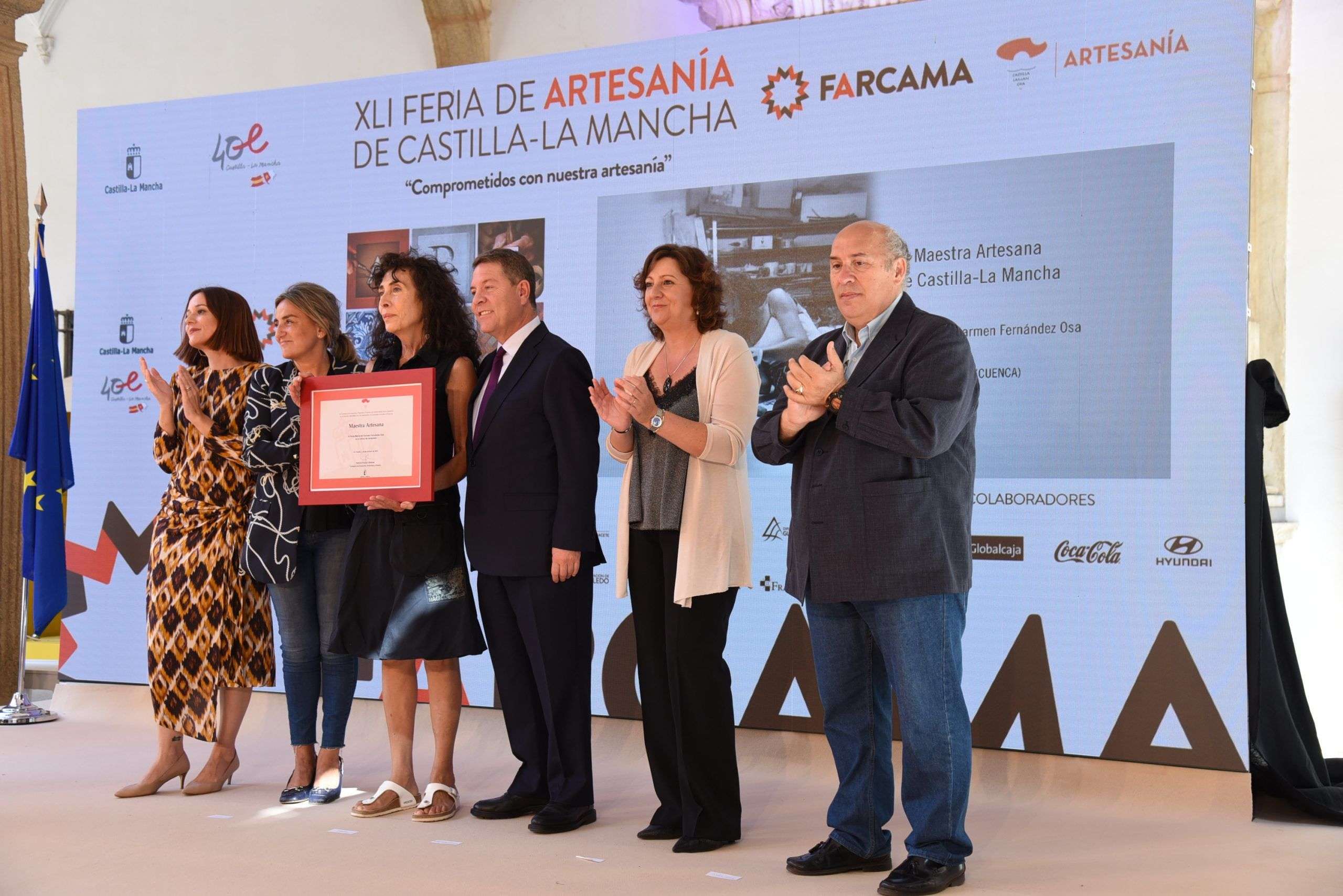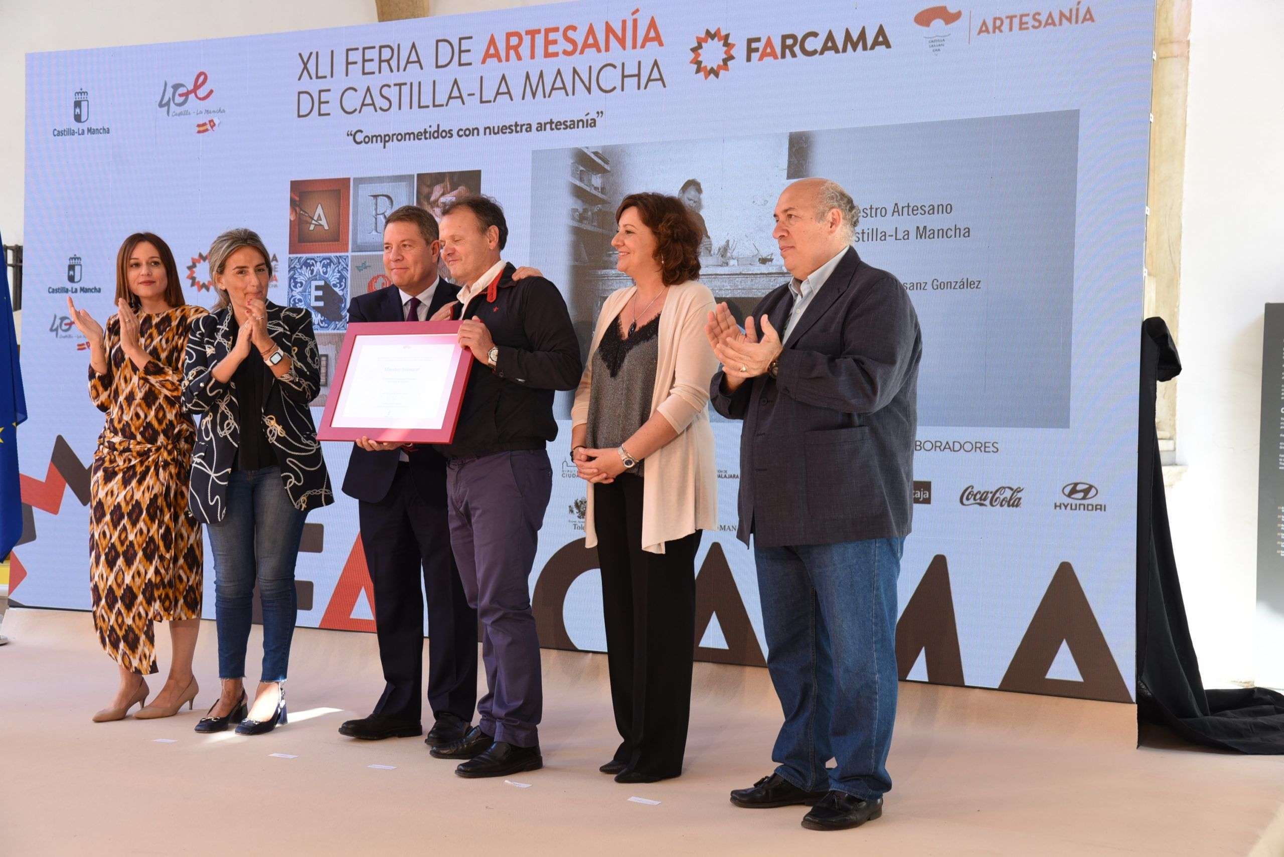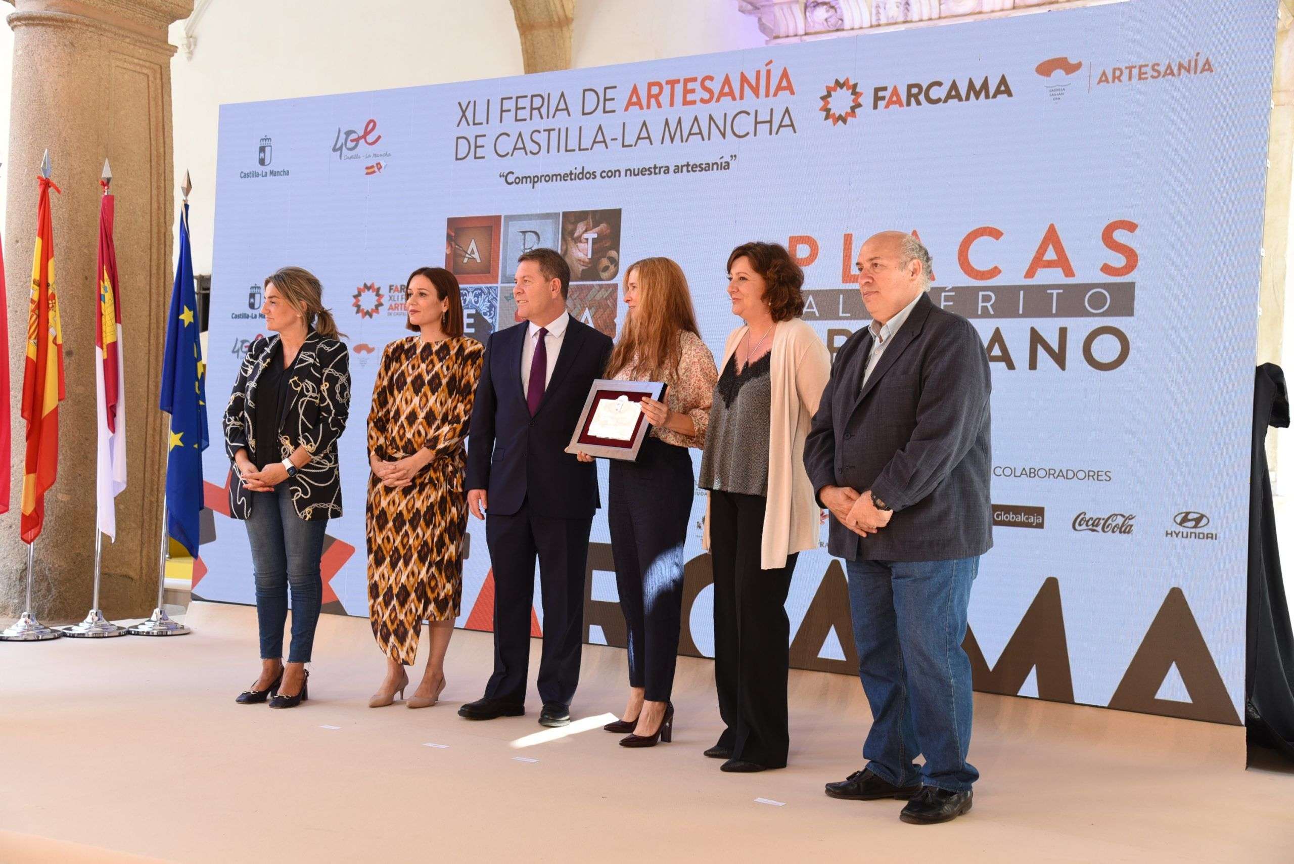 Junto a esta medalla, se entregaron cinco placas al Mérito Artesano, que han recaído, una en cada provincia y en concreto en el cuchillero albaceteño José Ramón Martínez; en la metalista de Puertollano (Ciudad Real), María de los Ángeles Delgado; en el ceramista conquense Tomás Bustamante; en el diseñador de Marchamalo (Guadalajara), JC Pajares, que ha subido este año a la pasarela Mercedes-Benz Fashion Week una colección en la que colabora de manera directa con ocho artesanos y artesanas de la región; así como en el ceramista de El Puente del Arzobispo (Toledo), Francisco Agudo.