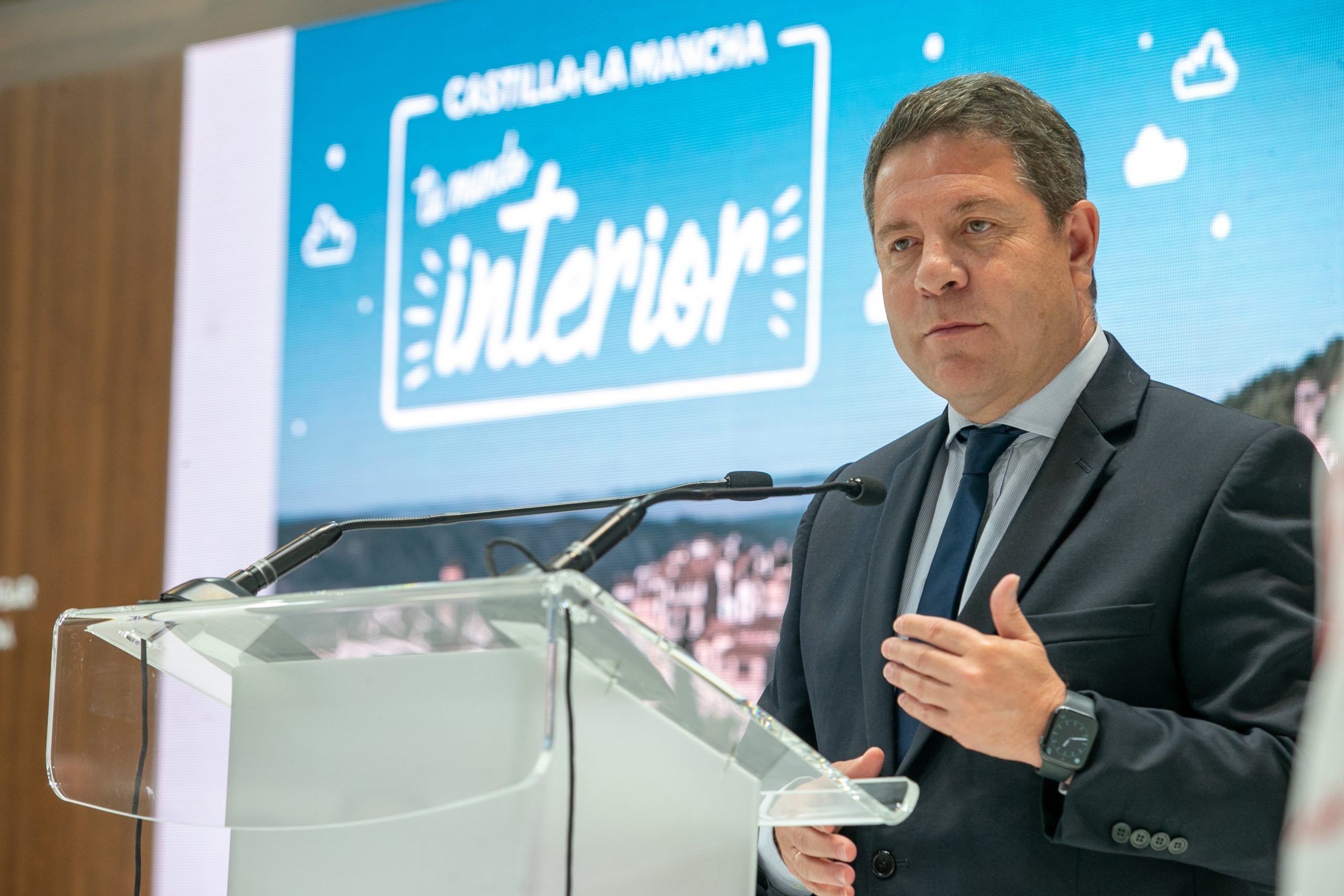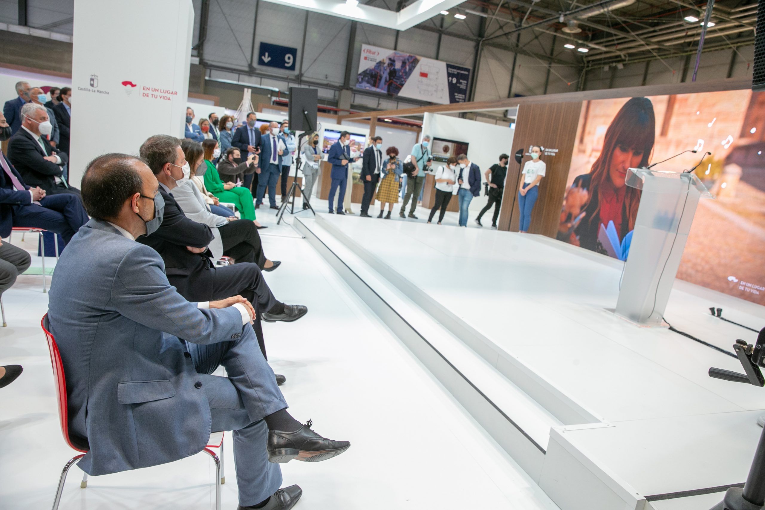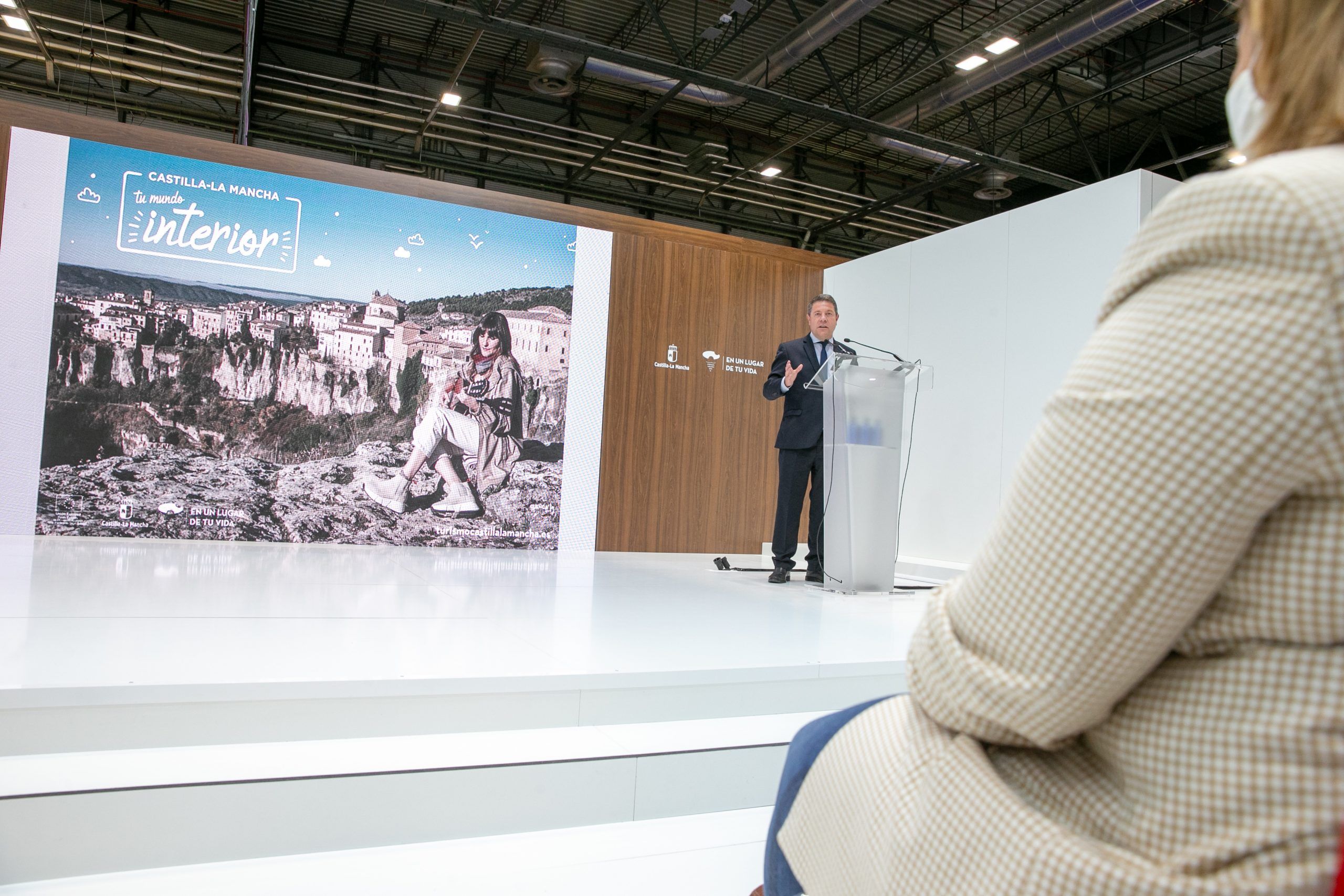 El presidente de Castilla-La Mancha, Emiliano García-Page, inauguraba el stand de Castilla-La Mancha en la edición 2021 de Fitur, un espacio de 1.300 metros cuadrados concebido para potenciar el negocio, y en el que se muestran ya las imágenes de la nueva campaña de promoción turística de la región, que cuenta como referencia a Rozalén.