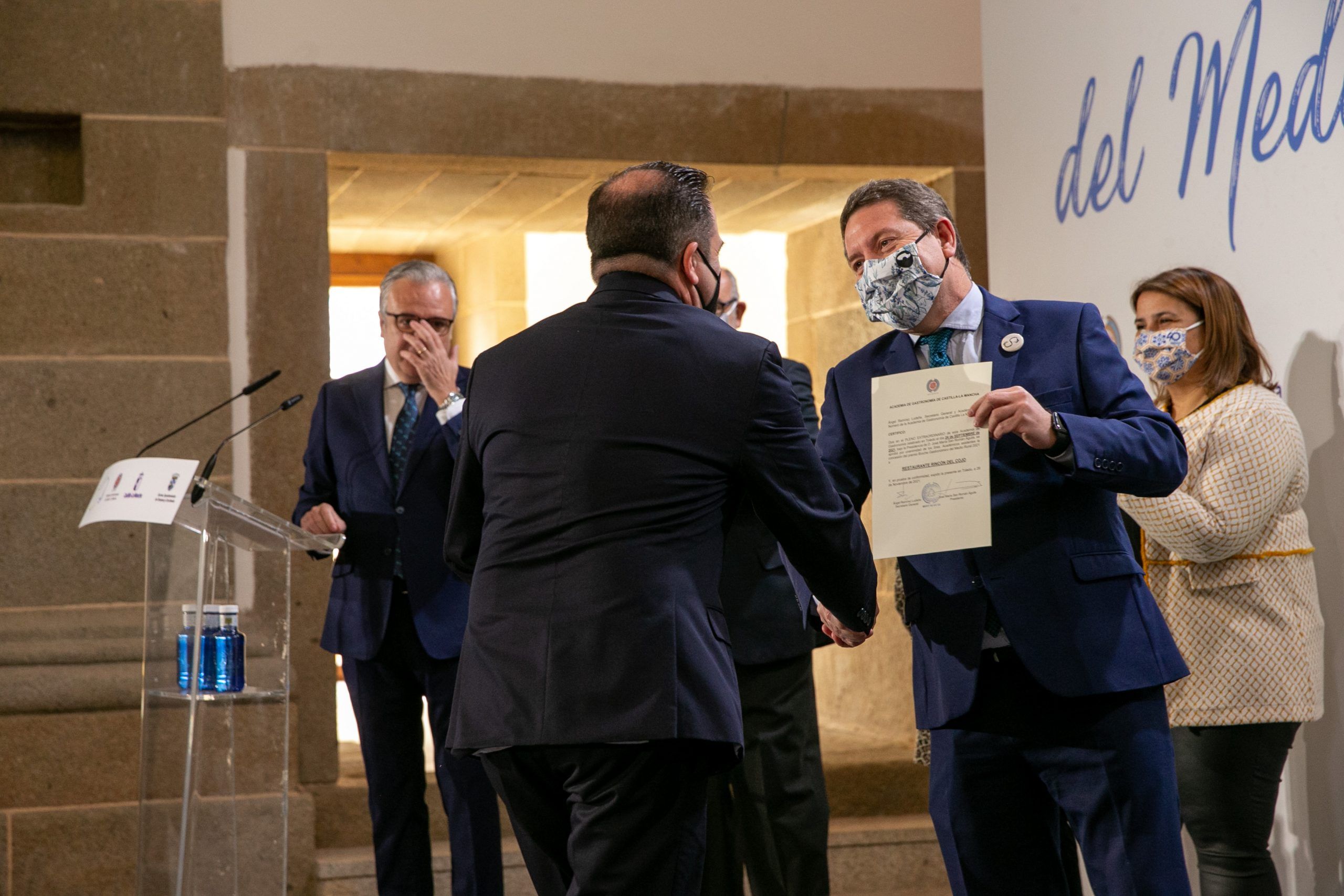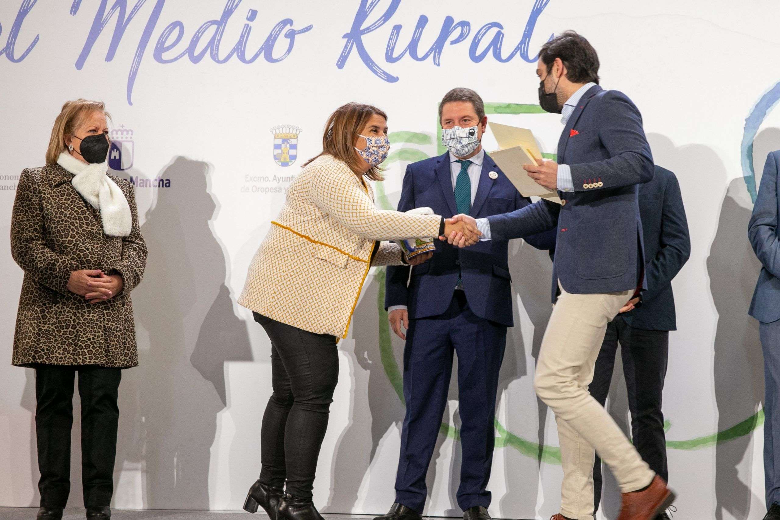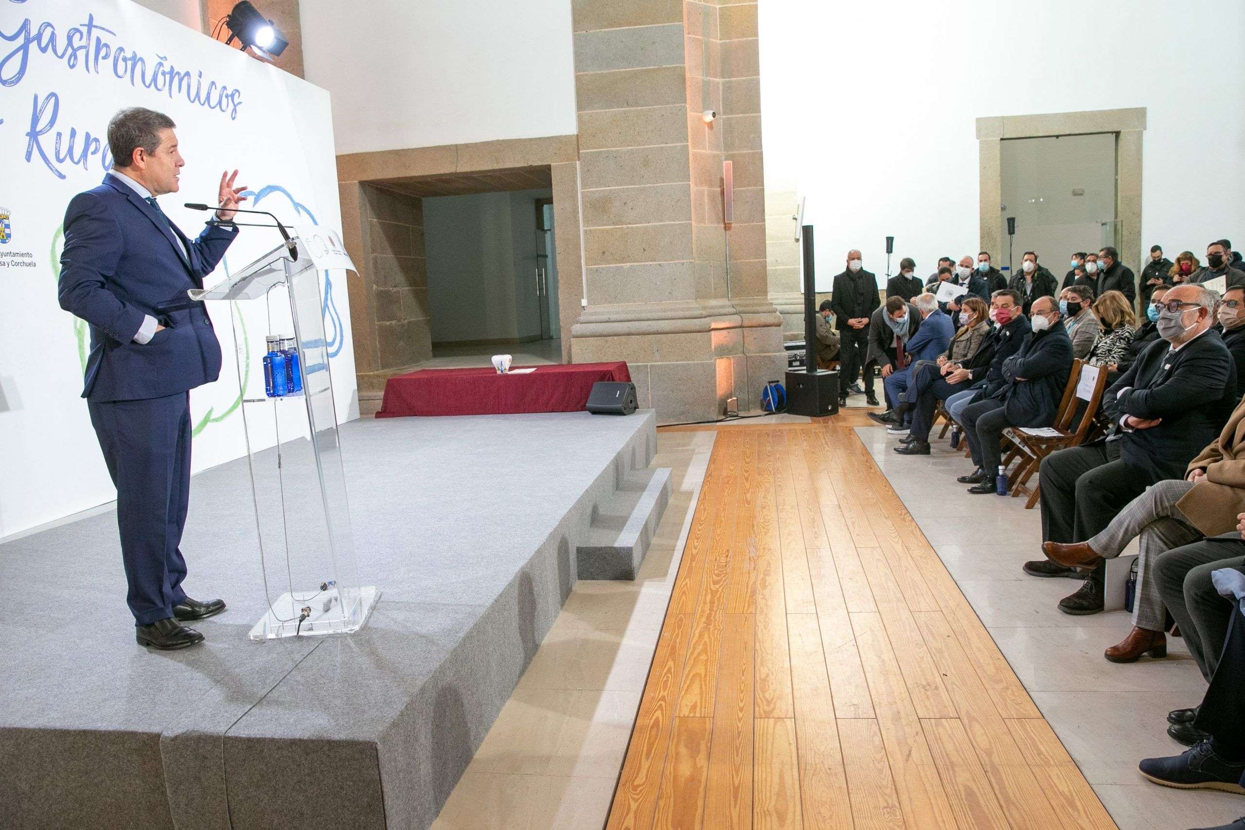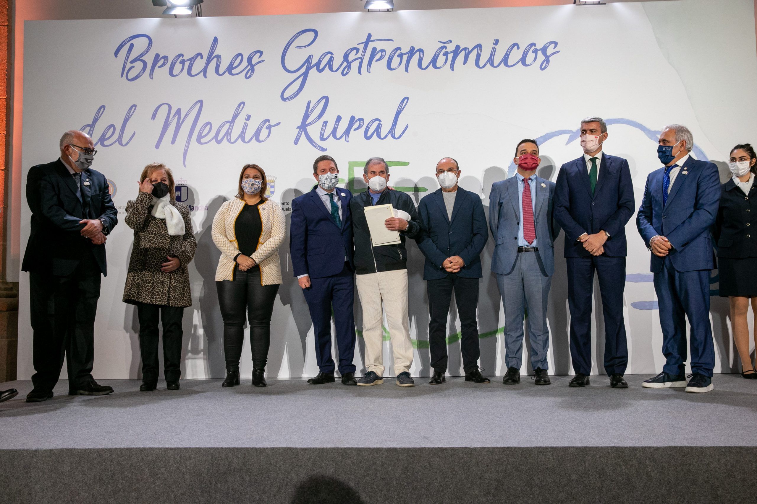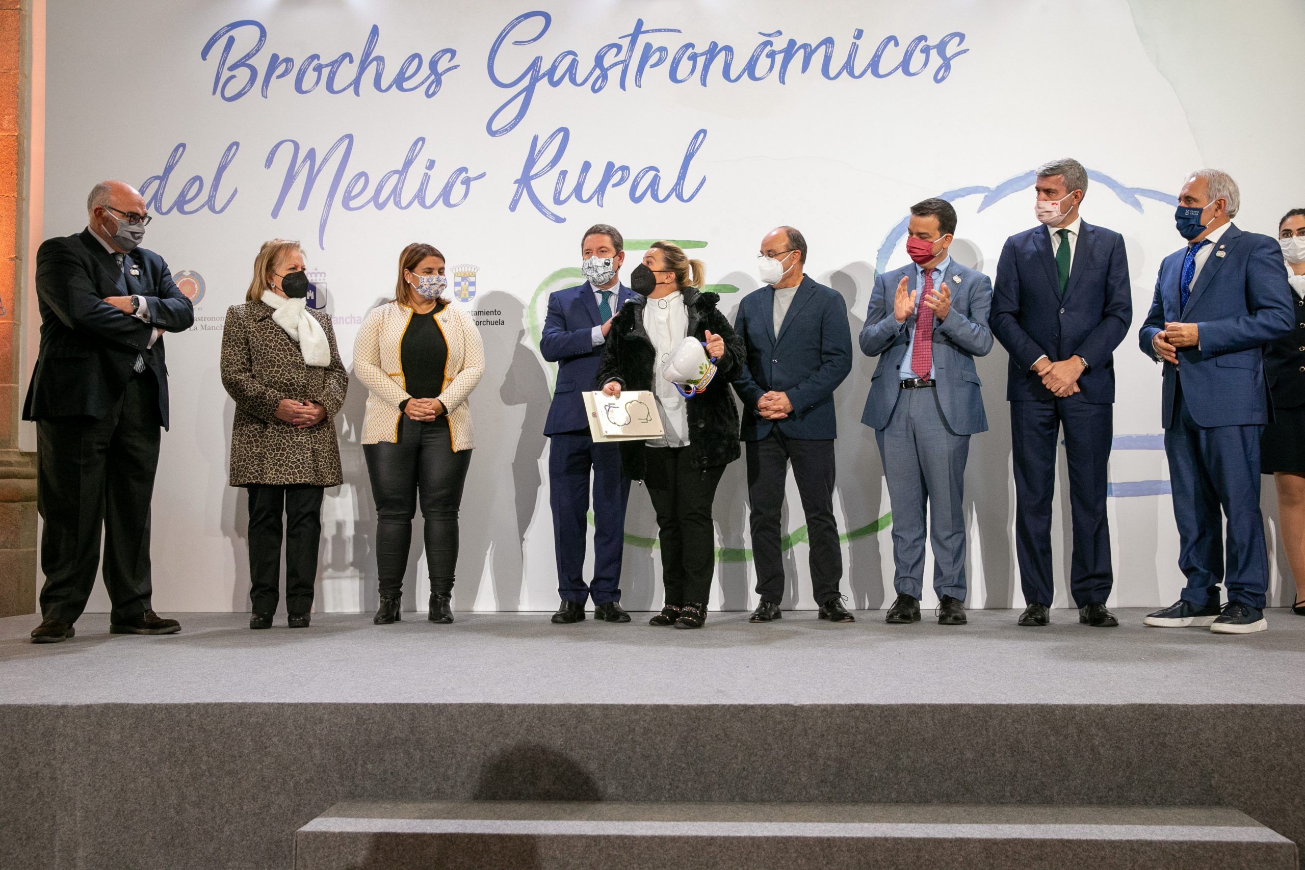 Oropesa (Toledo), 26 de noviembre de 2021.- El presidente de Castilla-La Mancha, Emiliano García-Page, ha entregado esta mañana en la localidad toledana de Oropesa los ‘Broches Gastronómicos del Medio Rural’, un sello que ha premiado a 25 establecimientos de municipios de menos de 3.000 habitantes de Castilla-La Mancha.