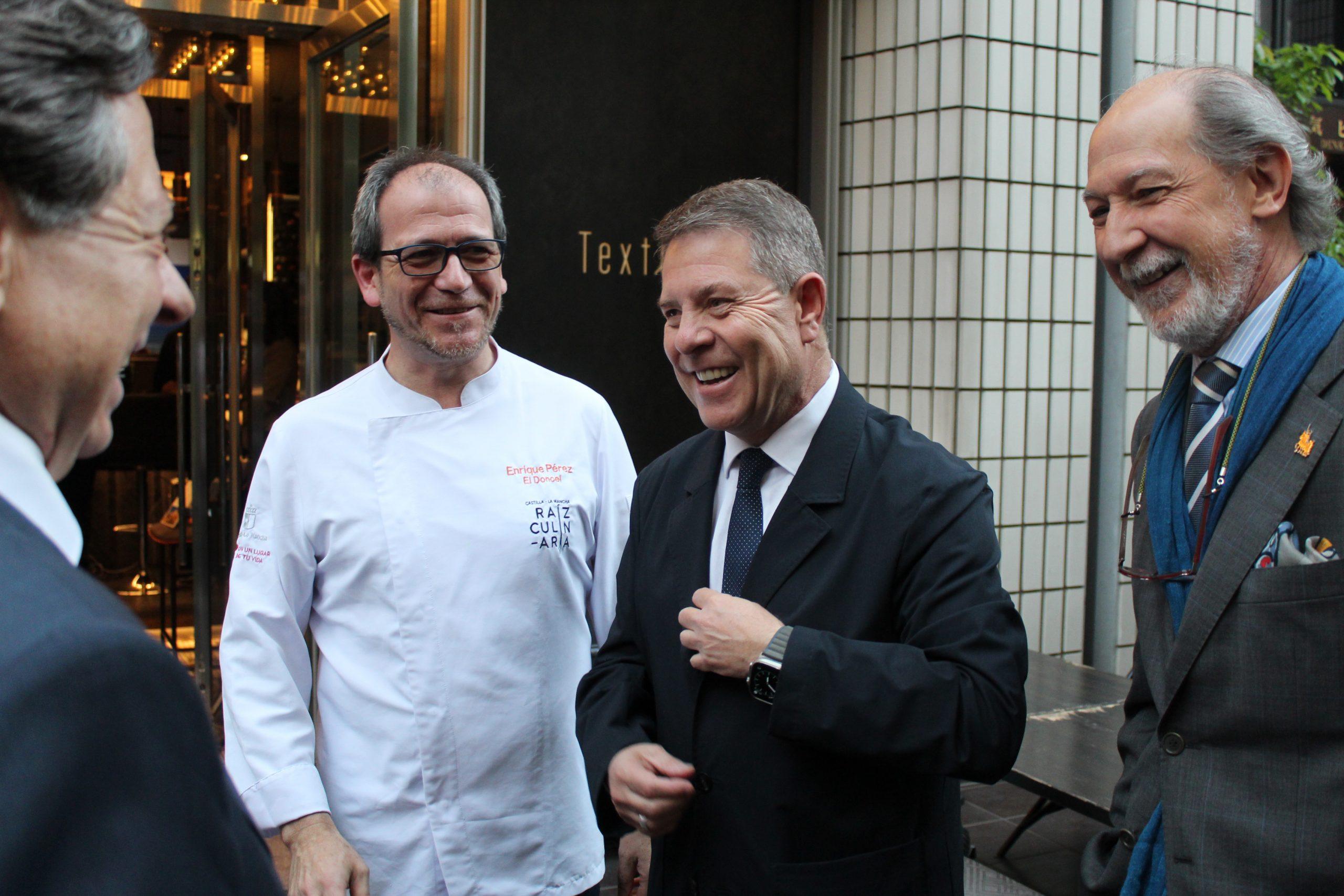 En el restaurante TexturA y con la colaboración de destacados chefs de la región como Enrique Pérez, de ´El Doncel´, en Sigüenza, en la provincia de Guadalajara, el presidente castellanomanchego ha presidido este acto acompañado por el presidente de las Cortes regionales, Pablo Bellido, la consejera de Economía, Empresas y Empleo, Patricia Franco, la titular de Bienestar Social, Bárbara García Torijano, y la directora general de Turismo y Artesanía, Ana Isabel Fernández Samper, entre otros.
