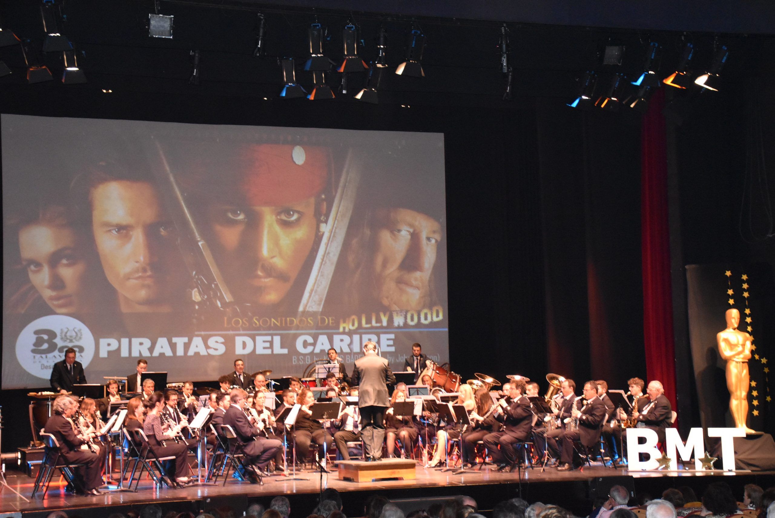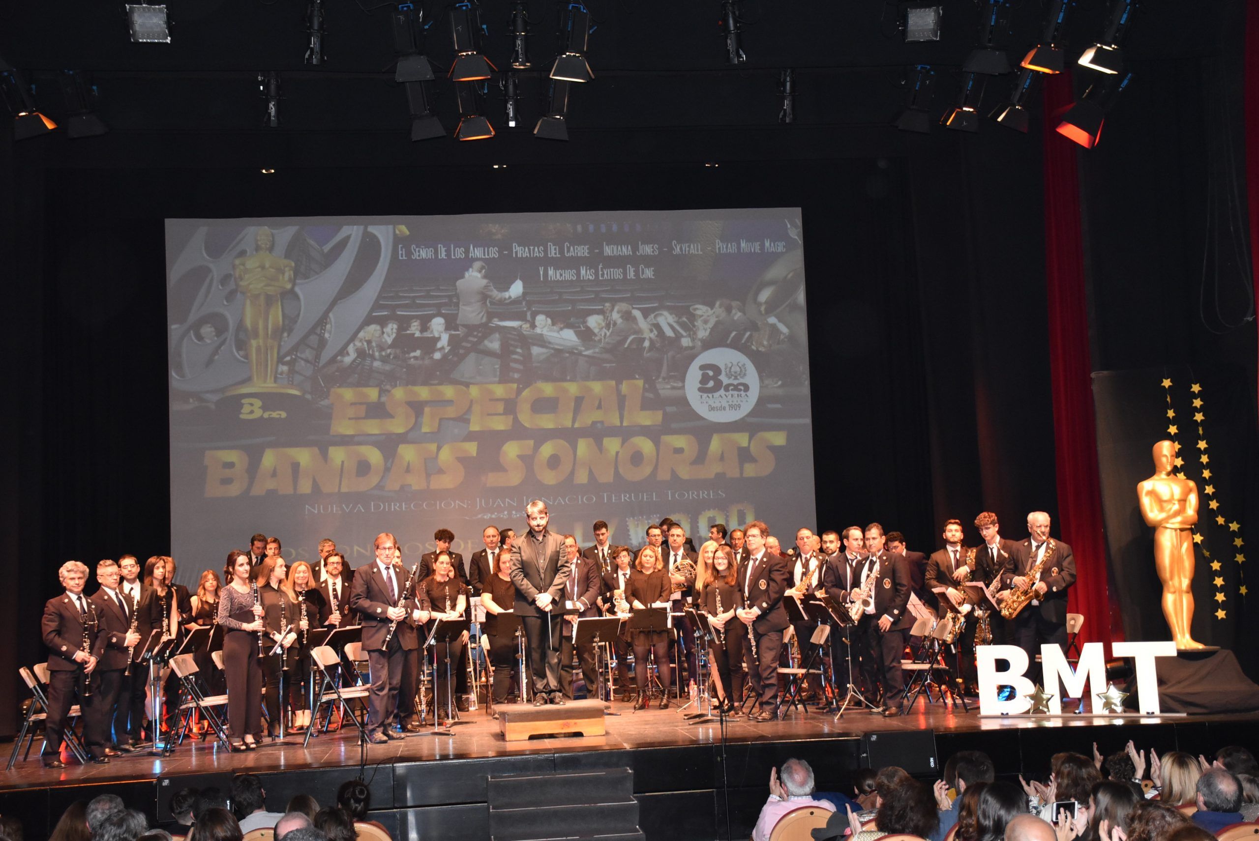 La Banda de Música de Talavera de la Reina bajo la nueva dirección de Juan Ignacio Teruel, ofreció el domingo 1 de Marzo un excepcional tributo al cine y a sus bandas sonoras, en un Teatro Palenque totalmente lleno, para disfrutar de un género que apasiona a todos los públicos. No pudo tener mejor estreno la nueva andadura de la Banda talaverana, que ahora bajo la batuta de Teruel, pretende ofrecer otros géneros y experiencias musicales, al público que desde hace años, sigue a esta agrupación musical tan arraigada en la Ciudad de la Cerámica. El tributo a las bandas sonoras del cine denominado Los sonidos de Hollywood, ofreció un escogido repertorio donde no faltaron piezas de películas como Superman, El señor de los Anillos, Aladdin, El Padrino, Indiana Jones, Jurassic Park, Skyfall, Piratas del Caribe o la oscarizada La La Land. Además, los músicos de la banda interpretaron magistralmente dos homenajes dedicados a las mas representativas bandas sonoras del insigne compositor Ennio Morricone, y a la saga Star Wars. La épica y archiconocida canción de la película de Stallone Rocky, cerró el telón de una gran velada dedicada a la música del cine.