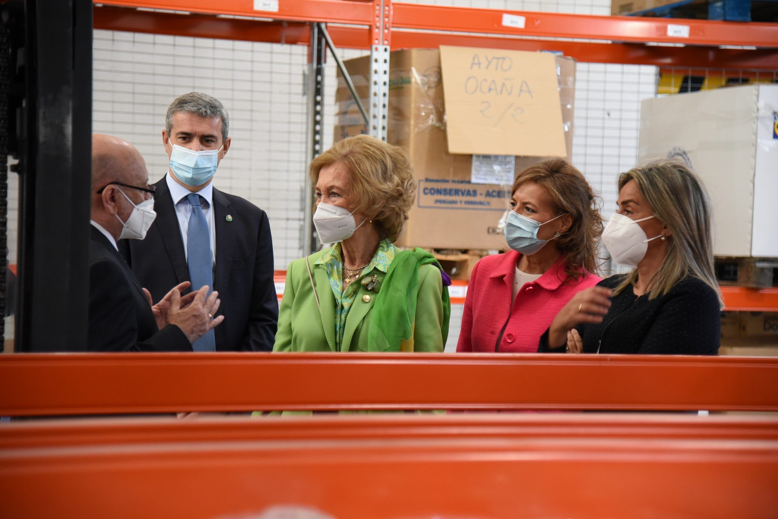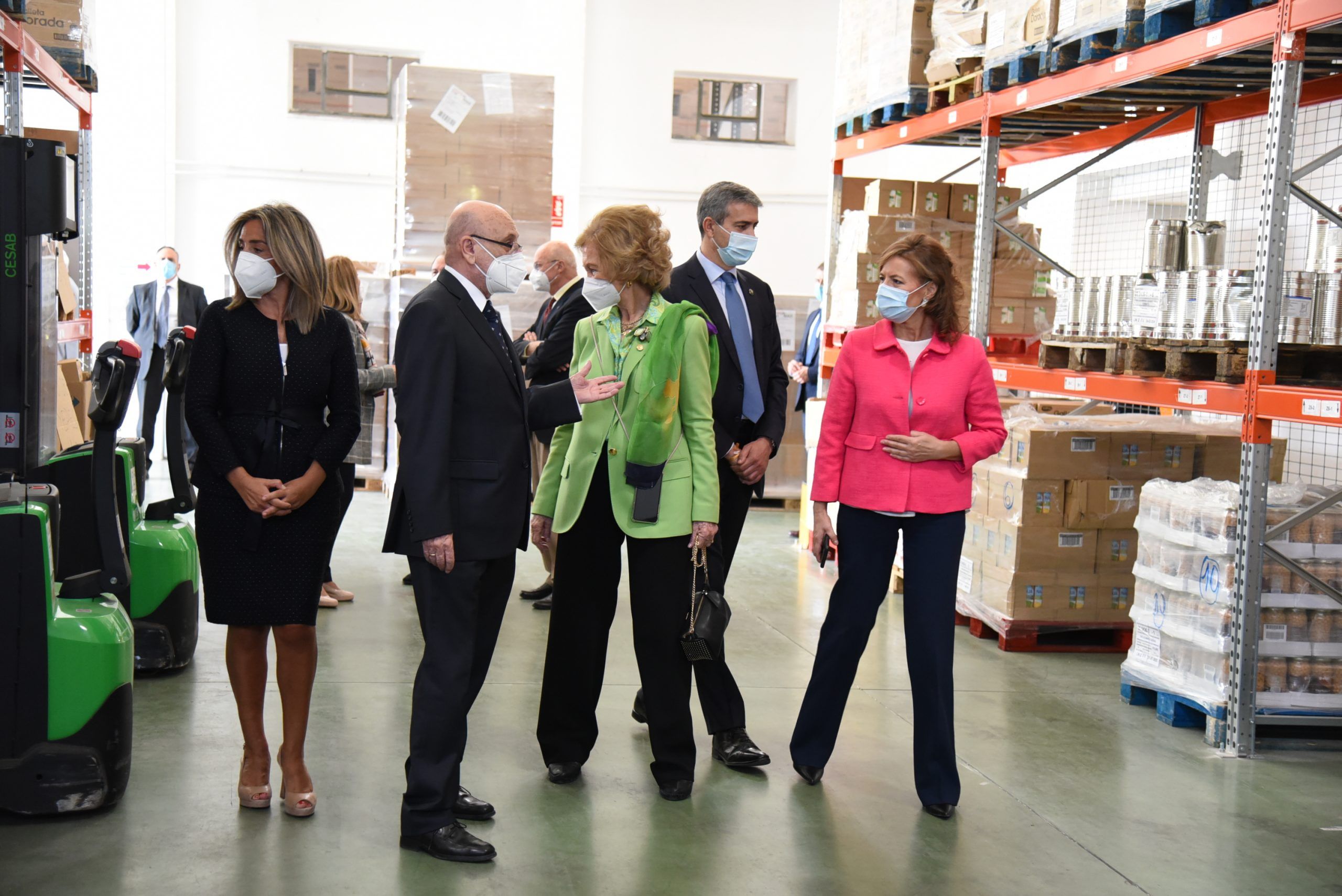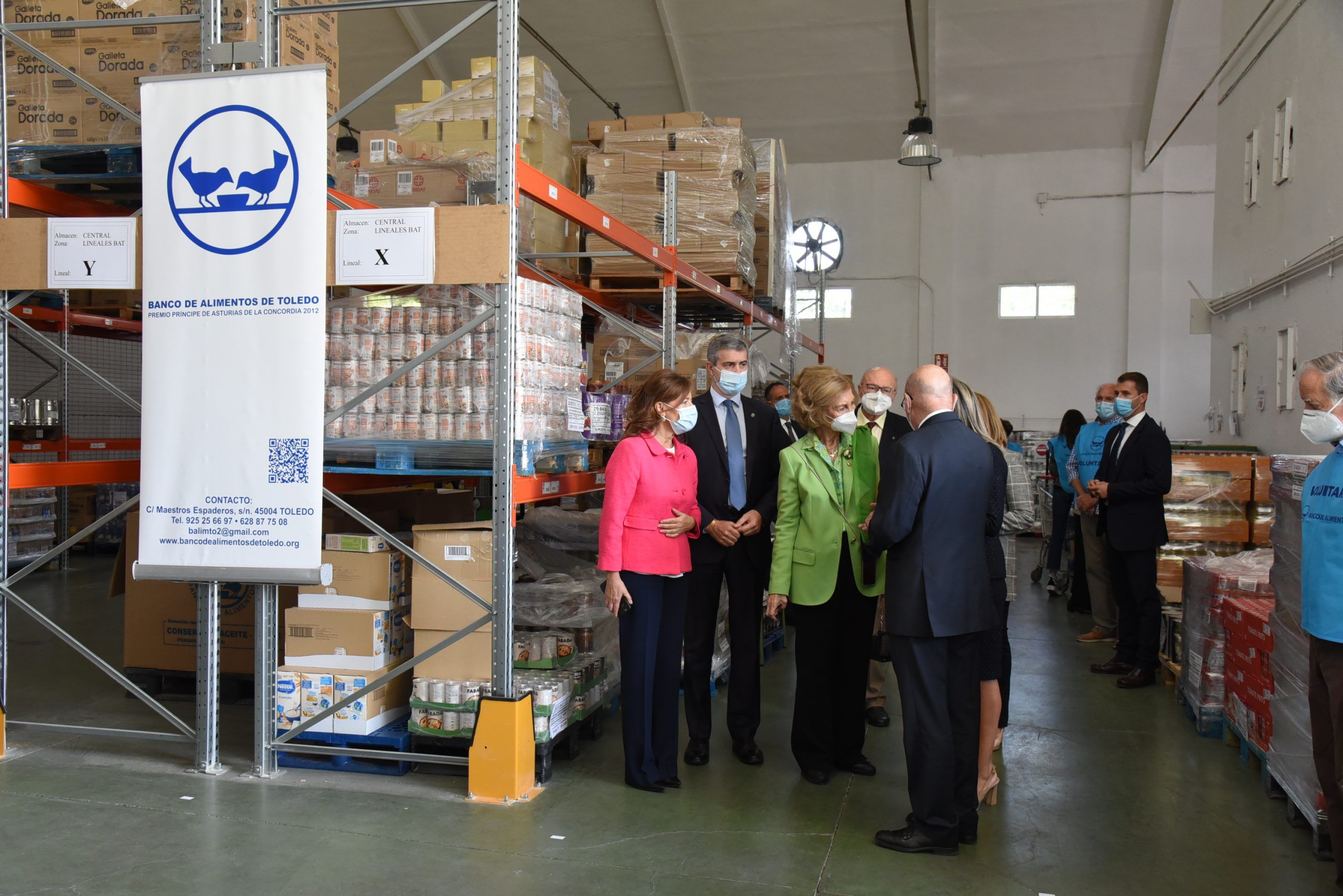 La Reina Sofía ha estado acompañada en su visita por la consejera de Bienestar Social Aurelia Sánchez, la alcaldesa de Toledo Milagros Tolén, el presidente de la Diputación de Toledo Álvaro Gutierrez, y por el presidente del Banco de Alimentos de Toledo, Manuel Lanza.