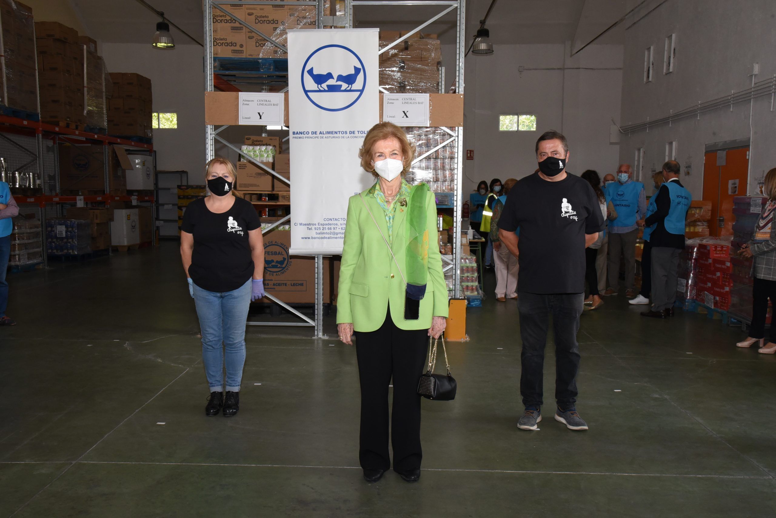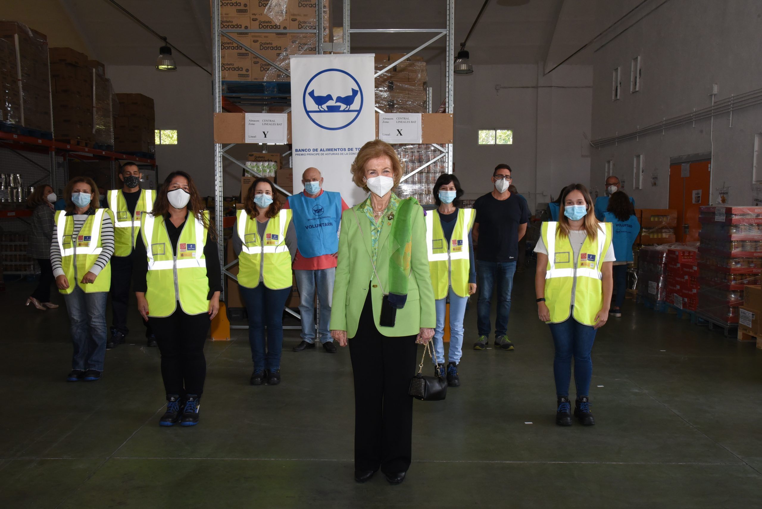 Toledo 2 octubre 2020.- La Reina Doña Sofía visitaba este jueves 1 de octubre las instalaciones del Banco de Alimentos de Toledo para mostrar su apoyo a la labor solidaria que la entidad viene realizando desde bastantes años. La Reina emérita ha conocido el trabajo y la labor que el Banco de Alimentos realiza en la ciudad y en la provincia de Toledo, prestando ayuda a la población más desfavorecida y vulnerable.