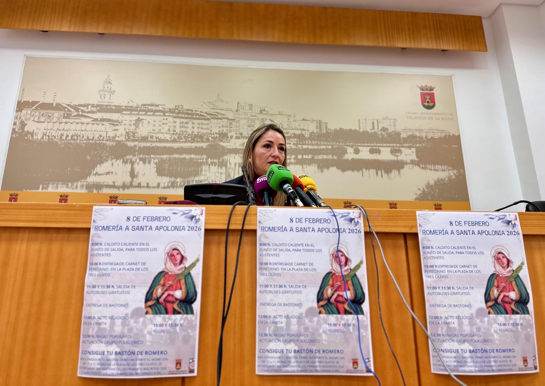 Redacción/Talavera de la Reina, 29 de enero de 2026.- La concejal de Festejos, María Pilar Guerrero, ha presentado la tradicional romería de Santa Apolonia, que tendrá lugar el próximo domingo, 8 de febrero, con salida desde la rotonda de los Tres Olivos y se espera superar la cifra de los 1.400 peregrinos.