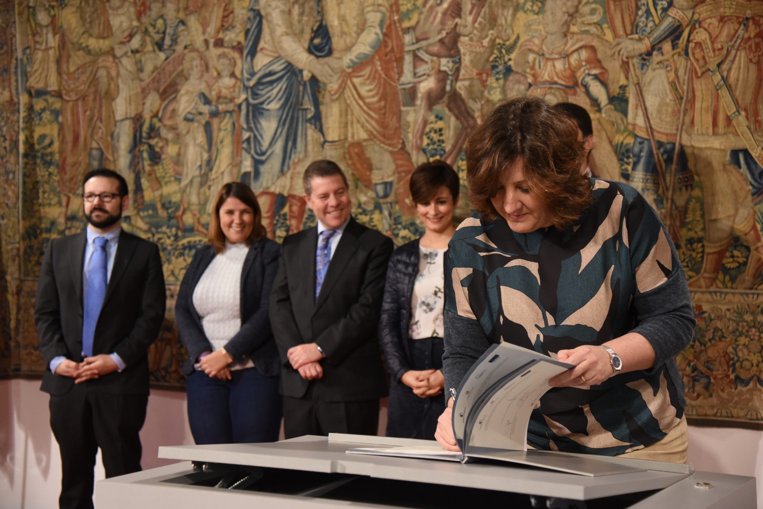 El presidente de Castilla-La Mancha Emiliano García-Page ha presidido la firma de los convenios que sirven de marco para la puesta en marcha de esas dos nuevas iniciativas en la búsqueda de empleo, que van a ampliar aún más el impacto de una medida que va a superar el millar de participantes desde la llegada de Page a la Presidencia de la Comunidad. Junto a él, han firmado el acuerdo la consejera de Economía, Empresas y Empleo, Patricia Franco; el director de Estrategia y Desarrollo de la Fundación Santa María la Real, Álvaro Retortillo; y las alcaldesas de Talavera y Puertollano Tita García Elez e  Isabel Rodríguez, en presencia también del director de Empleabilidad e Innovación Educativa de Fundación Telefónica, Luis Miguel Olivas.